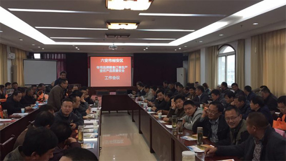 2017年11月17日,在裕安區(qū)農(nóng)業(yè)委員會會議室,來自安徽鑫源米業(yè)集團(tuán)、六安市長健米業(yè)有限公司、六安市豐碩米業(yè)有限公司等四家糧食收購加工企業(yè),安徽喜多收種業(yè)科技有限公司等五家種子企業(yè),裕安區(qū)農(nóng)事服務(wù)中心以及100余位種糧大戶代表歡聚一堂,共同參加由裕安區(qū)農(nóng)委主持召開的“裕安區(qū)專用品牌糧食訂單生產(chǎn)及農(nóng)產(chǎn)品質(zhì)量安全會議”;共同商談相互理解、相互支持、協(xié)調(diào)一致、合作共贏、齊心協(xié)力推進(jìn)裕安區(qū)專用品牌糧食生產(chǎn)大計。