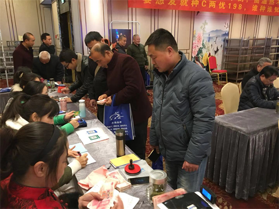 會議第三項由安徽喜多收種業(yè)的副總經(jīng)理趙見朝先生對公司2019年度水稻銷售優(yōu)惠政策進行了詳細的解讀,并在講解中穿插由趙總自己制作的深兩優(yōu)571和C兩優(yōu)198兩個品種今年在各地農(nóng)戶田間種植表現(xiàn)現(xiàn)場采訪視頻播放,使會議現(xiàn)場經(jīng)銷商們身臨其境,直觀感受到好品種就是不一樣,趙總的演講在大家的掌聲中結(jié)束。隨后,大家踴躍交款,參加享受公司今年的水稻銷售優(yōu)惠政策等。