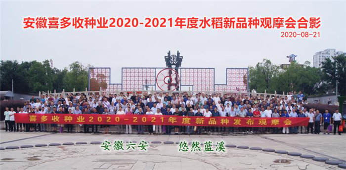 2020年8月20-21日,安徽喜多收種業(yè)在悠然藍溪隆重召開了“安徽喜多收種業(yè)2020年優(yōu)質水稻新品種信息發(fā)布會”,邀請來自江蘇、湖南、湖北、河南、江西、安徽等省的400多位種業(yè)界嘉賓到會,安徽省種子管理總站、六安市種子管理站領導以及有關新聞媒體親臨本會場進行指導、采訪。