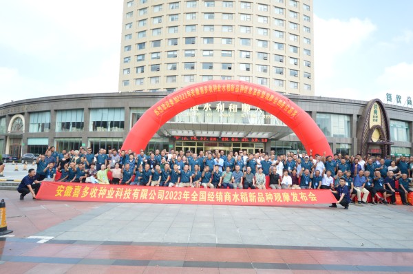 2023年8月19-20日,安徽喜多收種業(yè)在安徽水利和順大酒店召開了“安徽喜多收種業(yè)2023年新品種信息發(fā)布會(huì)”,會(huì)議邀請(qǐng)了來(lái)自江蘇、湖南、湖北、河南、江西、安徽等省的500多位種業(yè)界嘉賓到會(huì),會(huì)議還邀請(qǐng)了安徽省著名水稻育種家朱啟升研究員、六安市農(nóng)業(yè)農(nóng)村局中心副主任陳良松研究員、安徽省農(nóng)科院水稻研究所副所長(zhǎng)倪大虎博士、安徽省農(nóng)業(yè)技術(shù)推廣總站的有關(guān)專家、六安市種子管理站有關(guān)領(lǐng)導(dǎo)參會(huì)指導(dǎo)工作。