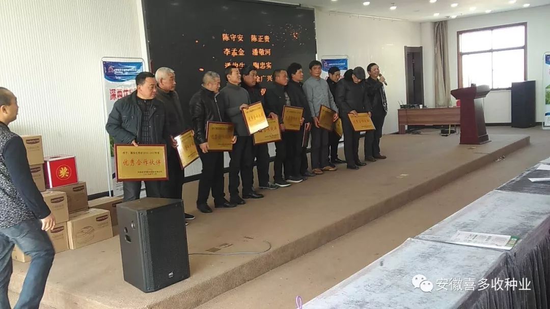 陳守安、陳正貴、李孟金等十位合作伙伴榮獲安徽喜多收種業(yè)優(yōu)質(zhì)合作伙伴獎(jiǎng)牌,及獎(jiǎng)金。