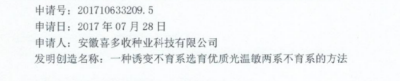 發(fā)明專利《一種誘變不育系選育優(yōu)質(zhì)光溫敏兩系不育系的方法》專利申請(qǐng)受理通知書