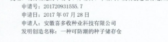 實(shí)用新型專利《一種可防潮的種子儲存?zhèn)}》專利申請受理通知書