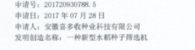 實(shí)用新型專利《一種新型水稻種子篩選機(jī)》專利申請(qǐng)受理通知書