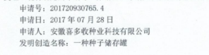 實用新型專利《一種種子儲存罐》專利申請受理通知書