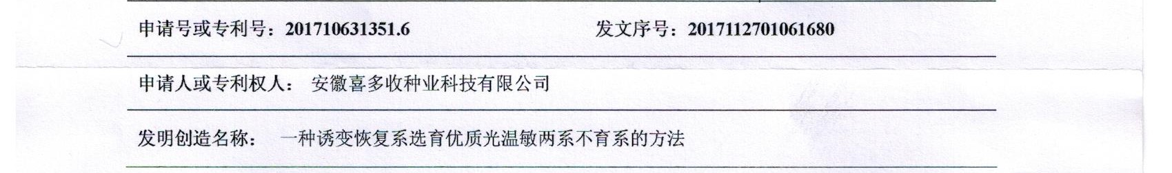 發(fā)明專利《一種誘變恢復(fù)系選育優(yōu)質(zhì)光溫敏兩系不育系的方法》實審?fù)ㄖ獣?/div>