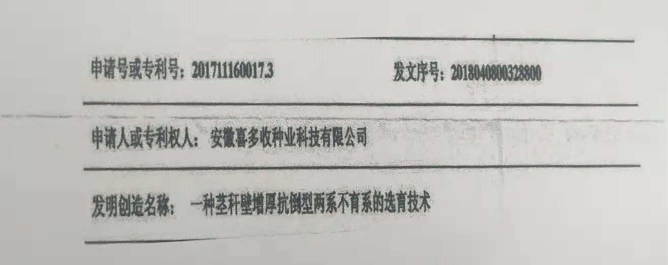發(fā)明專利《一種莖稈壁增厚抗倒型兩系不育系的選育方法》實審通知書